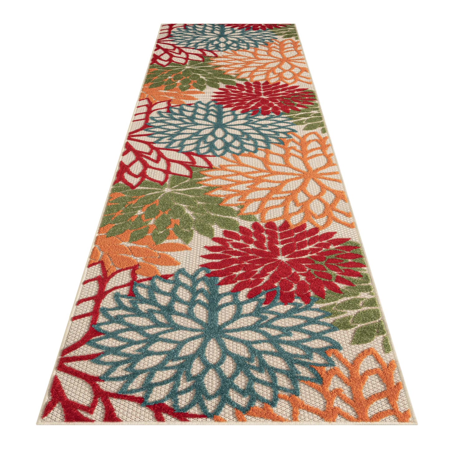 This colourful and happy indoor/outdoor collection has bold, floral patterns brought to life with a vivid, tropical colour palette, and is ideal for transforming mundane floor spaces to areas of rest and relaxation. The multi-textured polypropylene pile is shed-resistant and has anti-static properties. This collection is also suitable for outdoor use in covered patios, balconies, terraces, and courtyards with its latex base, and its durable construction is power loomed in Turkey to high standards.