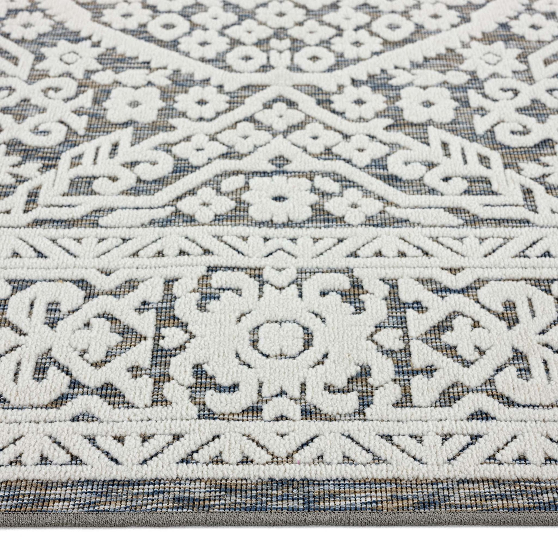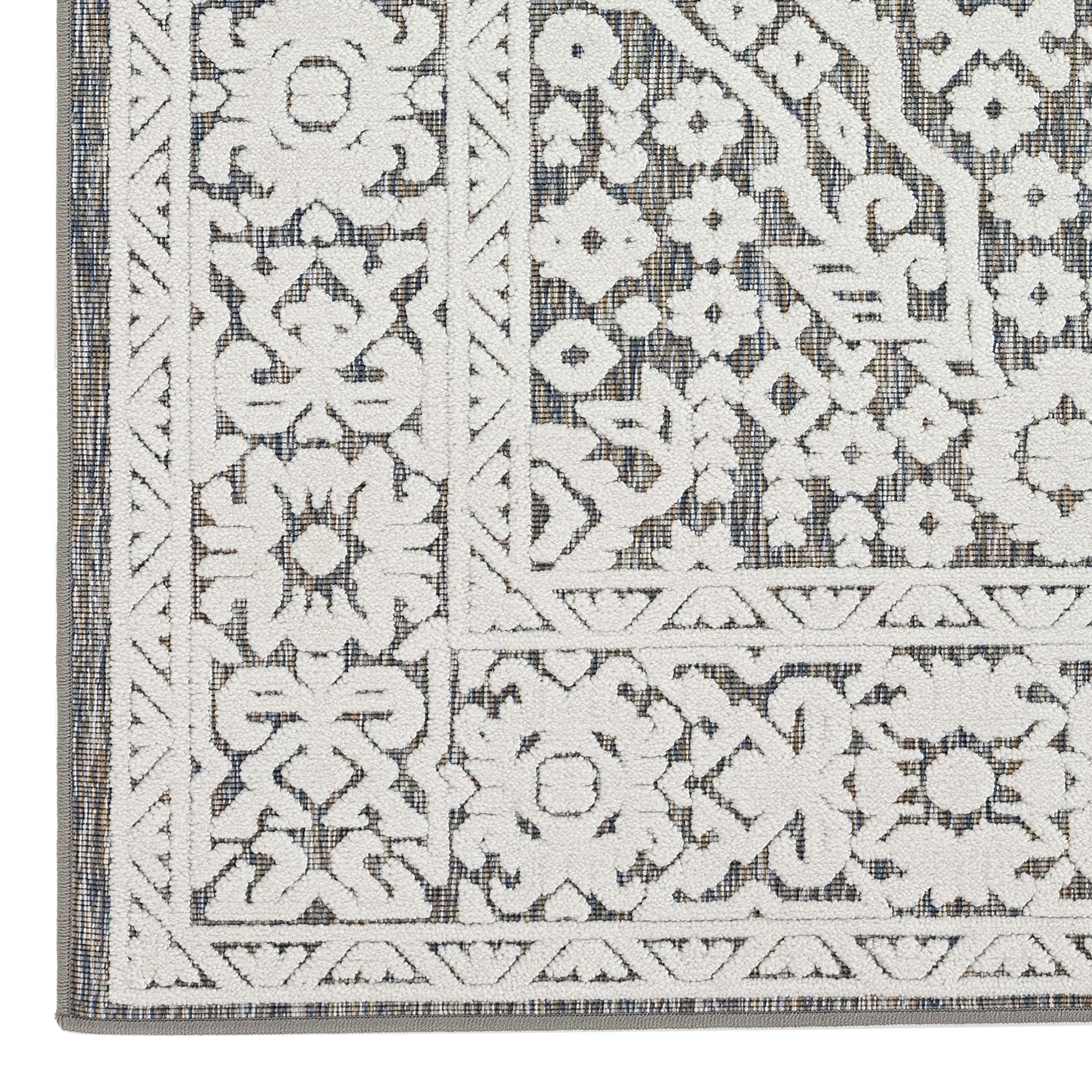 This versatile indoor/outdoor collection has subtle patterns woven into a multi-textured polyester and polypropylene pile, sculpted with cut-and-loop technique for a refined 3D effect. This deluxe collection is suitable for outdoor use in covered patios, balconies, terraces, and courtyards with its latex base. These attractive rugs also have a shed-resistant and anti-static pile that is both durable and easy to maintain.
